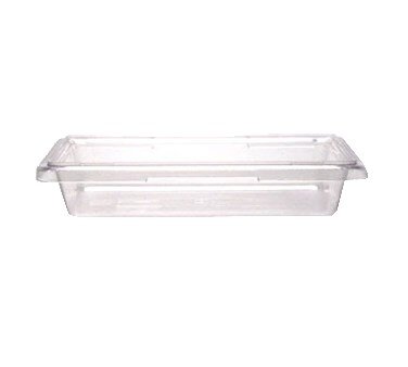 The Culinary Essentials Half Size Food Storage Box features a 3-1/2" depth and 1.75-gallon capacity, perfect for smaller quantities. Made from clear polycarbonate, it ensures visibility and durability. NSF certified and ideal for use in professional kitchens. SKU_10012611 Model: 12183CWTRI135