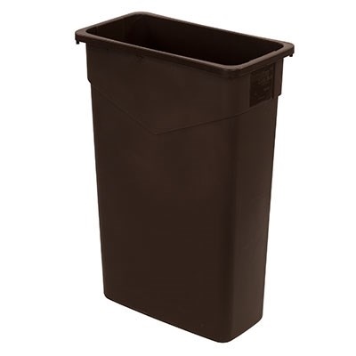 The Culinary Essentials Rectangular Waste Container in brown is built to handle demanding environments while maintaining a sleek, professional appearance. Featuring a 23-gallon capacity and measuring 20" x 11" x 29-7/8", it’s crafted from heavy-duty polyethylene for long-lasting performance. Integrated corner tabs ensure liners stay in place, and bottom helper handles offer ease during lifting and emptying tasks. SKU_10069398 Model: 342023TRI69