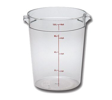 Designed for medium to large storage needs, this Culinary Essentials Round Storage Container has an 8-quart capacity, making it ideal for storing bulk ingredients or larger quantities of prepared foods. The clear polycarbonate material ensures quick identification of contents, and its sturdy construction is perfect for the rigors of a busy kitchen. Measuring 9-15/16" in diameter and 10-7/8" in height, it offers a space-efficient solution for organized storage. SKU_10012277 Model: RFSCW8135