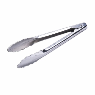Built for rugged use, the Culinary Essentials 9-1/2" Scalloped Utility Tong is designed for all heavy-duty tasks. Featuring a two-piece construction with a reliable coil spring mechanism, and made from durable 1.2mm thick stainless steel, this tong is ideal for precision and strength in both prep and serving applications. SKU_10069104 Model: 859307