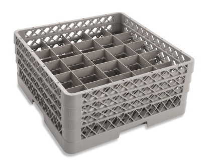 The Culinary Essentials 25-Compartment Glass Rack with 3 extenders is designed to provide optimal storage and cleaning for a variety of glassware. Each compartment measures 3-1/2" square with a maximum height of 7-13/16" inside, making it ideal for taller glasses and stemware. Featuring an open bottom and sidewalls, it allows for superior water and air circulation during washing and drying. Constructed in gray, this rack is NSF certified, ensuring it meets the highest standards for safety and sanitation. Proudly made in the USA, it's a reliable and durable choice for commercial kitchens and bars. SKU_10021516 Model: TR6BBB-60-TRI