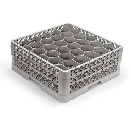 This 30-compartment glass rack provides ample space for taller glassware, featuring both one regular and one open extender to accommodate glasses up to 6-3/8" in height. The 3-3/16" hexagon-shaped compartments keep each piece securely separated, preventing breakage. With an open bottom and sidewalls for easy cleaning and airflow, this full-size, NSF-certified gray rack is ideal for high-volume foodservice environments, ensuring glassware remains protected and sanitary. SKU_10091902 Model: TR12HA-60-TRI