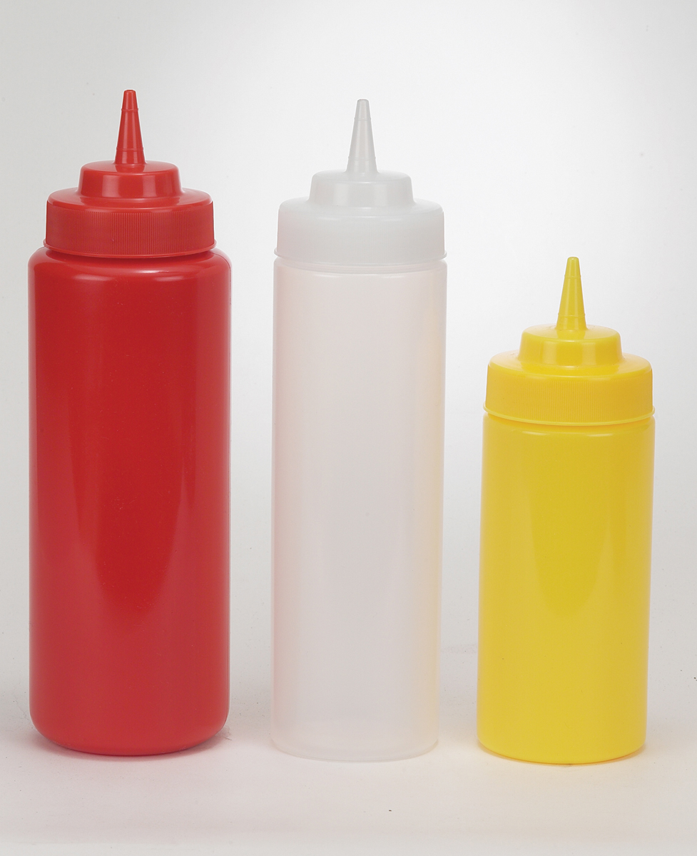 Culinary Essentials' Standard Squeeze Bottle Dispenser. These durable plastic bottles are perfect for condiments and sauces, ensuring mess-free precision. Ideal for buffets, outdoor service, and sandwich tables, this set of 12 provides ample supply for various needs. (Pk 12) SKU_10069605 Model: CSBW-08-C-CE