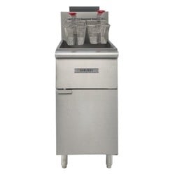 The Kintera LP Gas Fryer with 3 tubes and a 40 lb tank capacity is designed for high-efficiency frying in busy commercial kitchens. The peened stainless steel tank with smoothed welds ensures durability and easy cleaning, while the cool zone in the fry tank helps reduce oil breakdown. With 30,000 BTU heat exchange tubes and high heat baffles, it provides rapid heating and energy efficiency. The fryer also includes two nickel-chrome wire mesh baskets with red plastic-coated handles, an Invensys thermostat ranging from 200ºF to 400ºF, and an auto-reset high limit for added safety. The stainless steel front, top ledge, and door with a stabilizer make this fryer both durable and easy to maintain. Adjustable 6" legs and a full foam zone complete this reliable, performance-driven floor model. SKU_10020221 Model: KF3-P