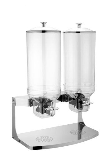 Streamline your breakfast service with the Premier Collections Arcata Buffet Cereal Dispenser. This double-container dispenser features a total capacity of 20 liters with each compartment holding up to 10 liters of cereal. Its sleek design measures 18-3/4" x 10-5/8" x 26" making it a practical addition to any buffet or breakfast bar. Crafted for durability and ease of use this dispenser helps keep cereals fresh and accessible enhancing both functionality and presentation in your dining area. SKU_10048197 Model: 300395