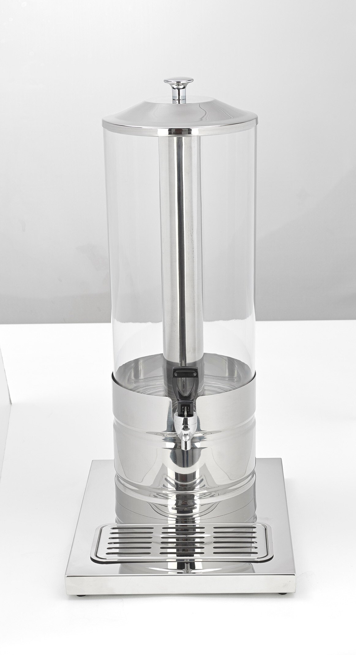 The Premier Collections Arcata Buffet Juice Dispenser in stainless steel features a 8.4 qt capacity perfect for elegantly serving juice and cold beverages at buffets catered events or dining establishments. Measuring 10-3/4" x 13-7/8" x 22-3/8" this dispenser offers a sleek modern design with durable construction for long-lasting performance. Its stainless steel finish adds a touch of sophistication while ensuring easy maintenance and cleaning making it a stylish and functional choice for any beverage station. SKU_10050877 Model: 300397