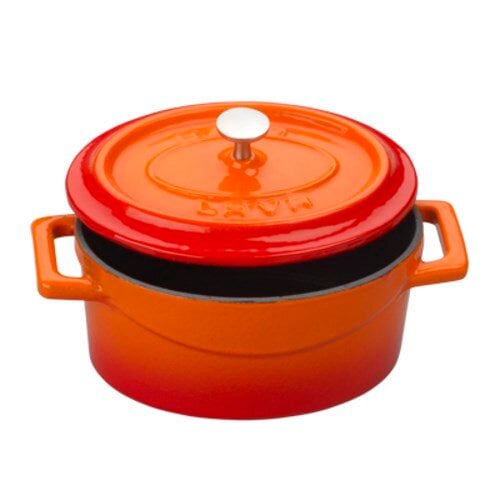 Premier Collections Arcata Cast Iron Mini Oval Casserole Dish with Lid Orange 14.25 oz