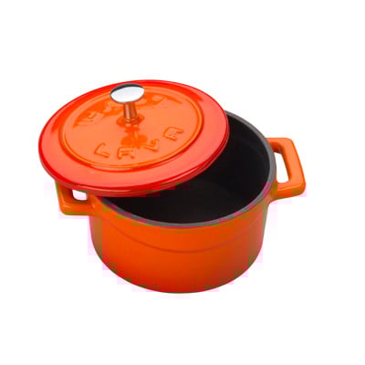 Inject some energy into your meals with the Premier Collections Arcata Mini Round Casserole Dish in bold orange cast iron. With a capacity of 11.75 oz and dimensions of 4" x 2-1/4" this dish includes practical handles and a secure lid. Its induction-safe design ensures efficient heat retention while the vibrant orange color adds a cheerful touch to your dining experience. SKU_10016748 Model: 081870