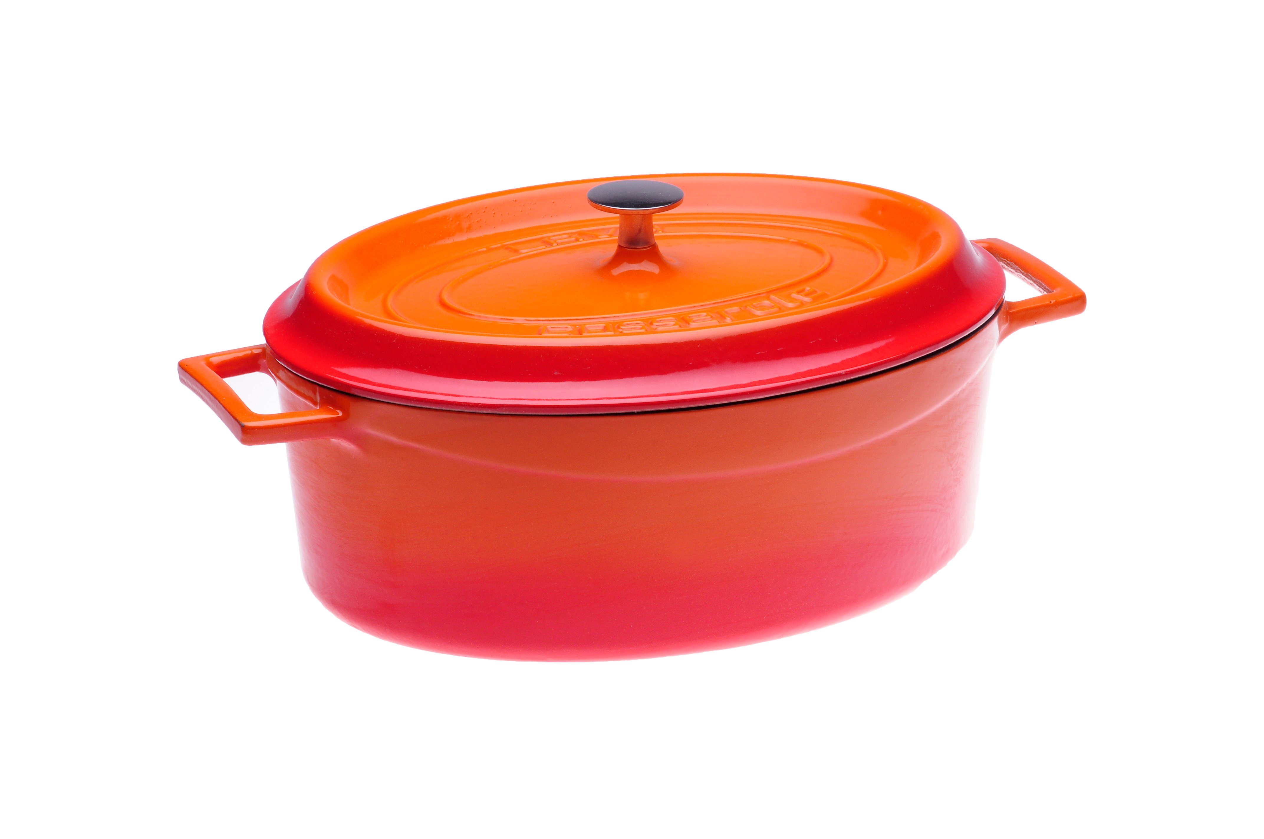 Premier Collections Arcata Cast Iron Oval Casserole Dish with Lid Orange 5 qt