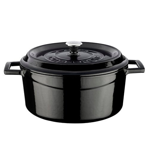 Premier Collections Arcata Cast Iron Round Casserole Dish with Lid Black 4.75 qt