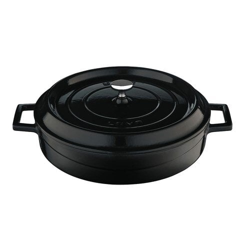 The 6 qt black cast iron round casserole dish is designed for both style and practicality. Perfect for preparing large meals or buffet presentations its spacious capacity and classic black finish make it a standout piece. The dish includes a secure lid and ergonomic handles for easy handling and its induction-safe design ensures optimal cooking performance. SKU_10053939 Model: 300114