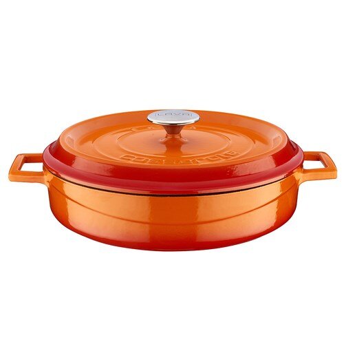 Premier Collections Arcata Cast Iron Round Casserole Dish with Lid Orange 3.7 qt