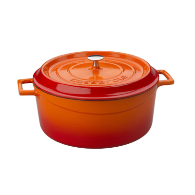 Premier Collections Arcata Cast Iron Round Casserole Dish with Lid Orange 7 qt