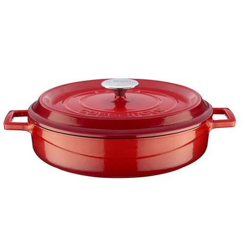 Premier Collections Arcata Cast Iron Round Casserole Dish with Lid Red 3.7 qt