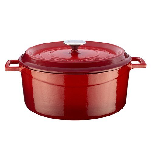 Premier Collections Arcata Cast Iron Round Casserole Dish with Lid Red 7 qt
