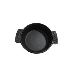 This compact 7-3/4 oz black cast iron hot pot from the Arcata LAVA series is ideal for single servings or side dishes. Its small size doesn't compromise on quality offering the same heat retention and durability as larger pieces. Use with a Lava collection underliner to enhance your serving presentation. SKU_10029366 Model: 080530