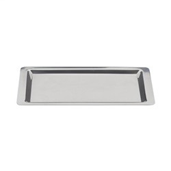 The Premier Collections Arcata Rectangular Serving Tray in stainless steel sized at 8-1/2" x 4-1/2" features a stylish mirror finish for a refined presentation. This compact tray is perfect for serving small bites or desserts offering a sophisticated touch to any occasion. SKU_10018884 Model: 070042