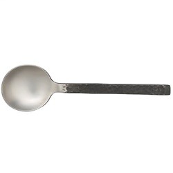 This elegant bouillon spoon features a distinctive hammered pattern and a sleek matte black finish making it a stylish addition to any dining table. Crafted from durable 18/0 stainless steel it offers both sophistication and practicality. Dishwasher safe for easy cleaning. SKU_10029031 Model: 034811