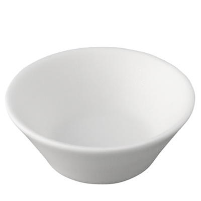The Premier Collections Venu Bone China Conical Bowl with a 1 oz capacity and a 2-1/2" diameter is perfect for small portions or dipping sauces. It combines a delicate translucent design with superior durability. Chip scratch and thermal shock resistant this conical bowl is also dishwasher safe for effortless cleanup. SKU_10091681 Model: 020253