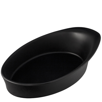 The Premier Collections Vista Alegre Bakeware Hot Spot Au Gratin Dish Black 19.3 oz is a stylish and durable stoneware dish perfect for both baking and serving. With an elegant black finish and a generous 19.3 oz capacity it is ideal for preparing larger portions of au gratin casseroles or other baked favorites. Measuring 8-5/8" x 5-1/8" in an oval shape this versatile dish is oven-safe up to 572°F ensuring even cooking at high temperatures. Its sleek design and robust build make it suitable for professional kitchens as well as home dining. SKU_10091595 Model: 020114