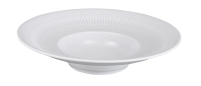 The Premier Collections Vista Alegre Utopia Rim Soup Bowl with a 10 oz capacity and a 10-1/2" diameter is a sophisticated choice for serving soups and broths. Featuring the subtle gray origami-inspired design this white porcelain bowl adds a refined touch to your table. Its durable construction ensures it is dishwasher and microwave safe while resisting thermal shock and chemicals for long-lasting use. SKU_10091783 Model: 922336