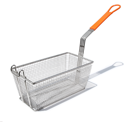 Culinary Essentials Fry Basket with Orange Handle 6-516" x 12-18" x 5-516"