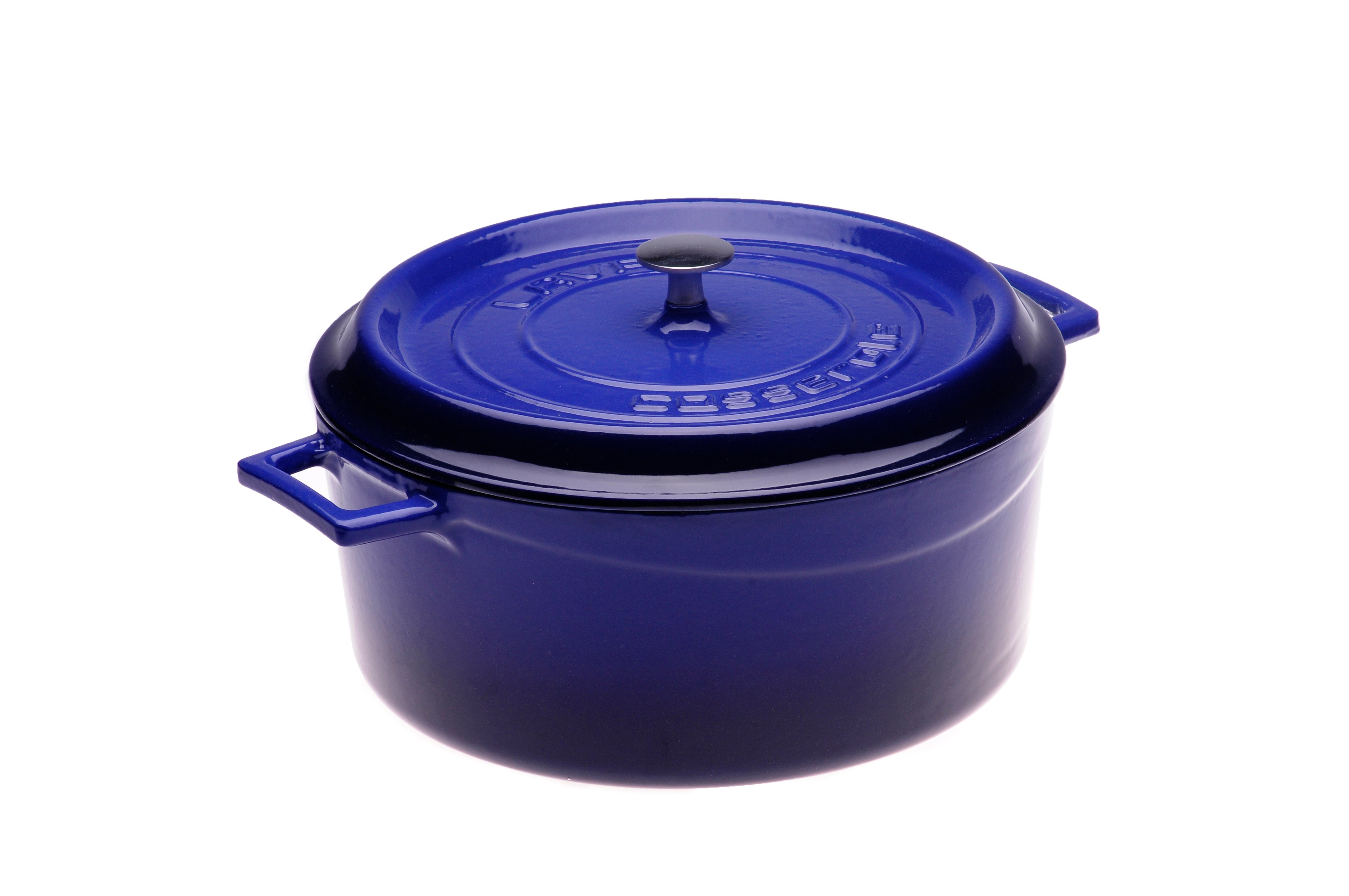 Premier Collections Arcata Cast Iron Round Casserole Dish with Lid Blue 6 qt