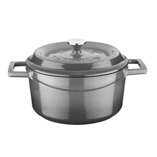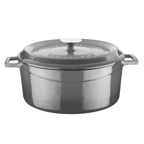 Premier Collections Arcata Cast Iron Round Casserole Dish with Lid Gray 6 qt