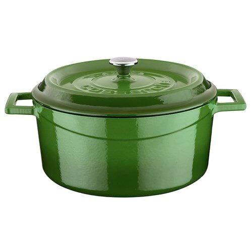 Premier Collections Arcata Cast Iron Round Casserole Dish with Lid Green 7 qt