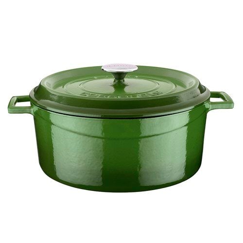 Premier Collections Arcata Cast Iron Round Casserole Dish with Lid Green 6 qt