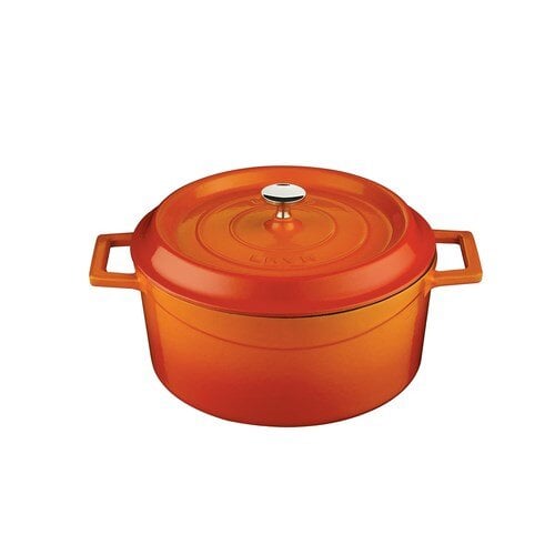 Premier Collections Arcata Cast Iron Round Casserole Dish with Lid Orange 3 qt