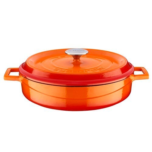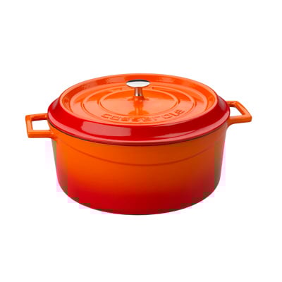 Premier Collections Arcata Cast Iron Round Casserole Dish with Lid Orange 6 qt